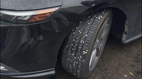 图钉扎破汽车轮:一场突如其来的“袭击”